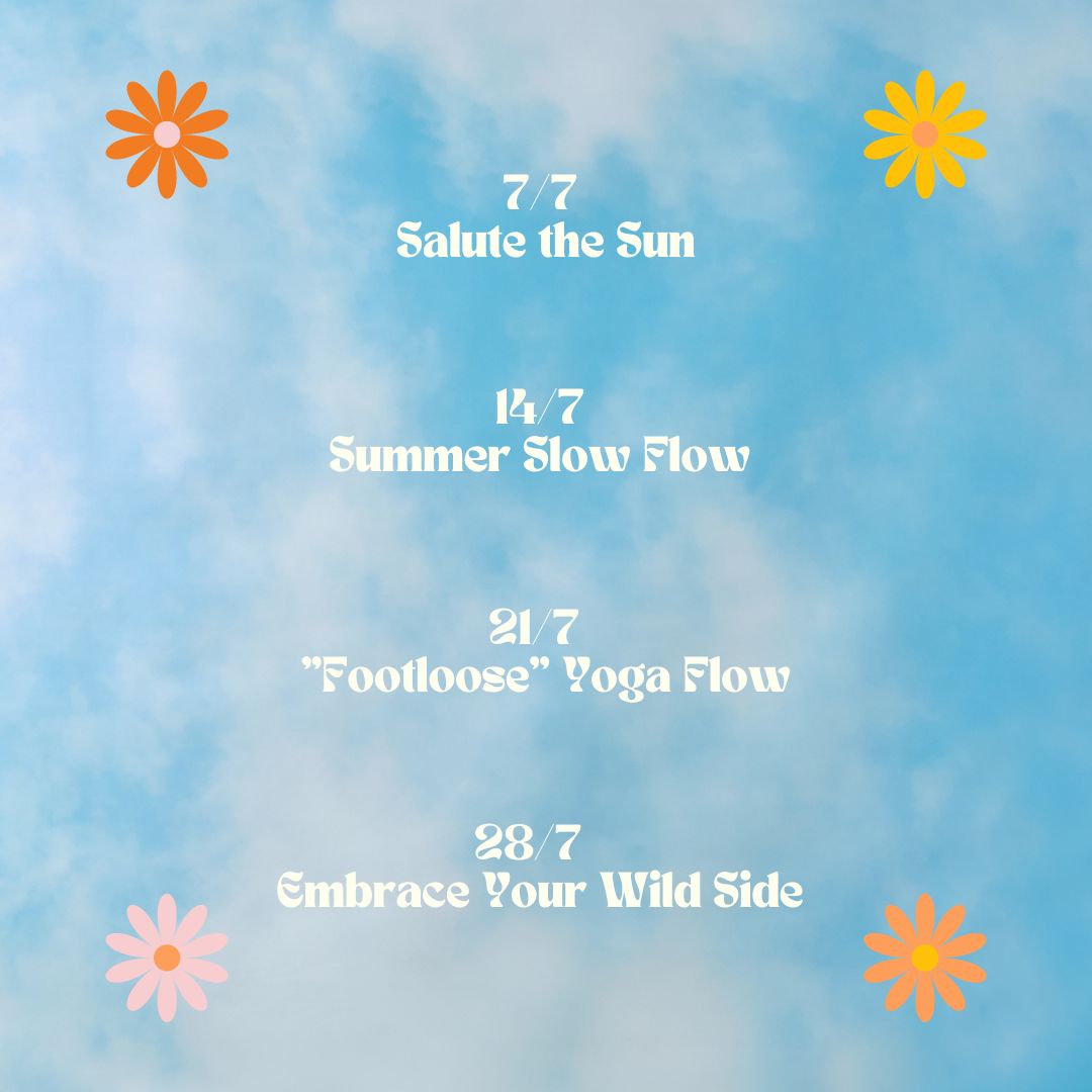 Every Friday morning from 9-10:15 in July, join me for a 75-minute themed Vinyasa Flow class!